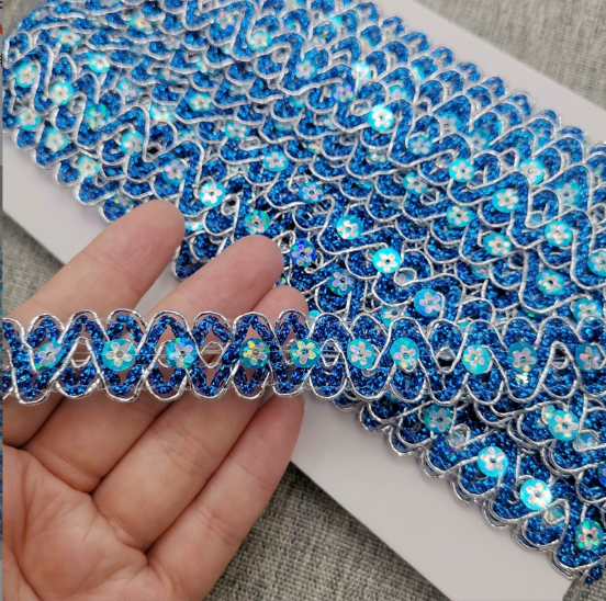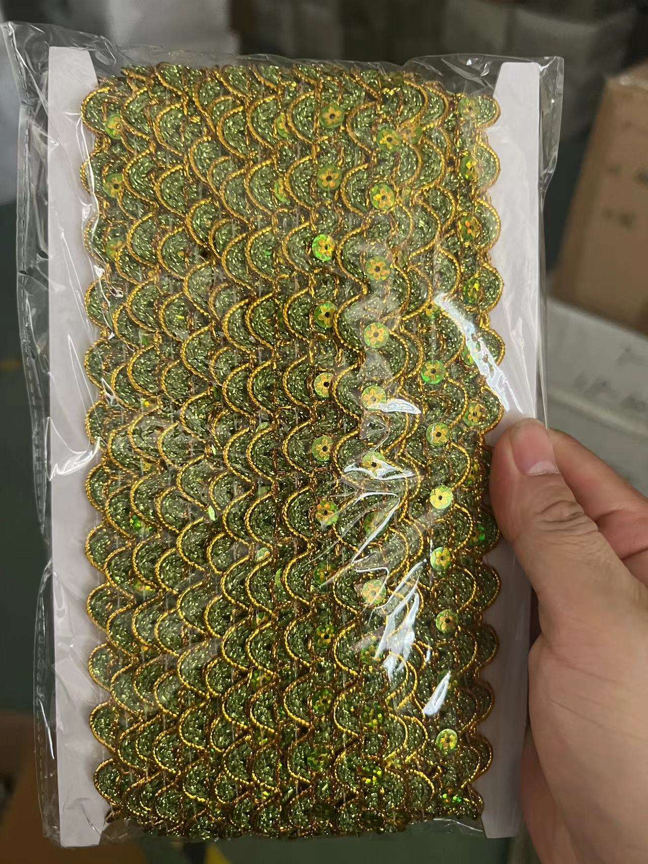 Kleidung Accessoires Gold und Silber Metallic Border Lace Trim Metallic Gold Pailletten Stickereien Tatting Spitzenverkleidung nimmt die Metall-Paillettensticketechnik an und kombiniert sich mit dem ausgehöhlten Spitzengestaltung, wodurch es für die Dekoration des Kleidungszubehörs geeignet ist.