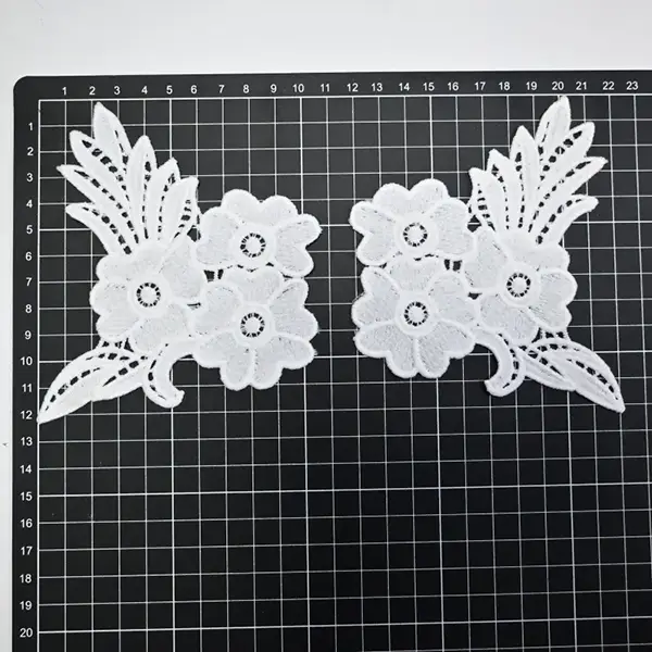 White Milk Seide Stickerei Spitze Vintage Chemische Spitze für Brautkleiderschuhe und andere Kleidungszubehör aus luxuriöser Milchseide mit komplizierten gestickten Blumenmustern für zeitlose Eleganz. Perfekt für Brautkleider, Schleier, Schuhverzierungen und zarte Kleidungsakzente. Der ultra-weiche, leichte Stoff füllt sich wunderschön bei der Struktur. Genau laserschneidende Kanten sorgen für saubere Oberflächen. Handwäsche empfohlen, um empfindliche Details zu erhalten. Ideal für Braut Couture, Dessous und Heirloom-Qualität-Zubehör. Erhältlich vom Hof von Premium -Stofflieferanten.