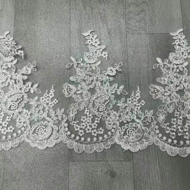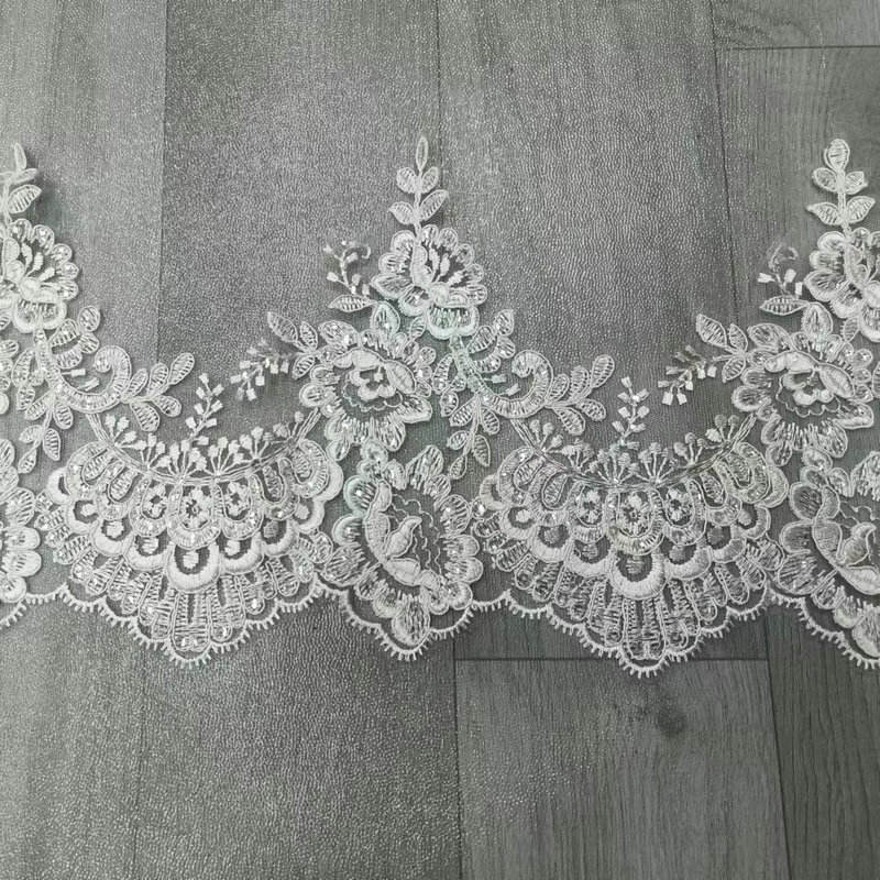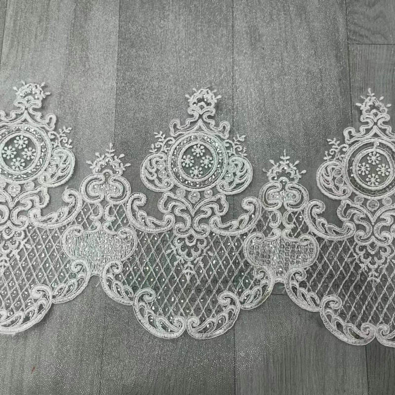 Luxus weiße Brautbrautbrautspitze, besticktes Brautspitzenverkleidungen für Hochzeitskleid mit einer hochrangigen französischen Spitzenbasis, exquisites dreidimensionales Stickerei und reine weiße Töne, strahlt Eleganz aus. Hochwertige maßgefertigte Dekorationen speziell für Brautkleider und Abendkleider mit zarten und komplizierten Mustern, leichten und hautdurchdringenden Textur, Unterstützung für die Anpassung von Breite und Mustern, die die Ästhetik romantischer und luxuriöser Bräute perfekt interpretieren. Mit einer High-End-französischen Spitzenbasis, exquisiten dreidimensionalen Stickereien und reinen weißen Tönen strahlt es Eleganz aus. Hochwertige maßgefertigte Dekorationen speziell für Brautkleider und Abendkleider mit zarten und komplizierten Mustern, leichten und hautdurchdringenden Textur, Unterstützung für die Anpassung von Breite und Mustern, die die Ästhetik romantischer und luxuriöser Bräute perfekt interpretieren.